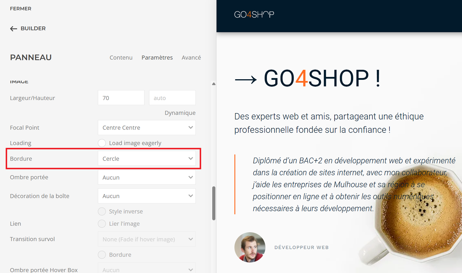 Puis, trouvez l’option Bordure > Cercle. Le résultat est le suivant :